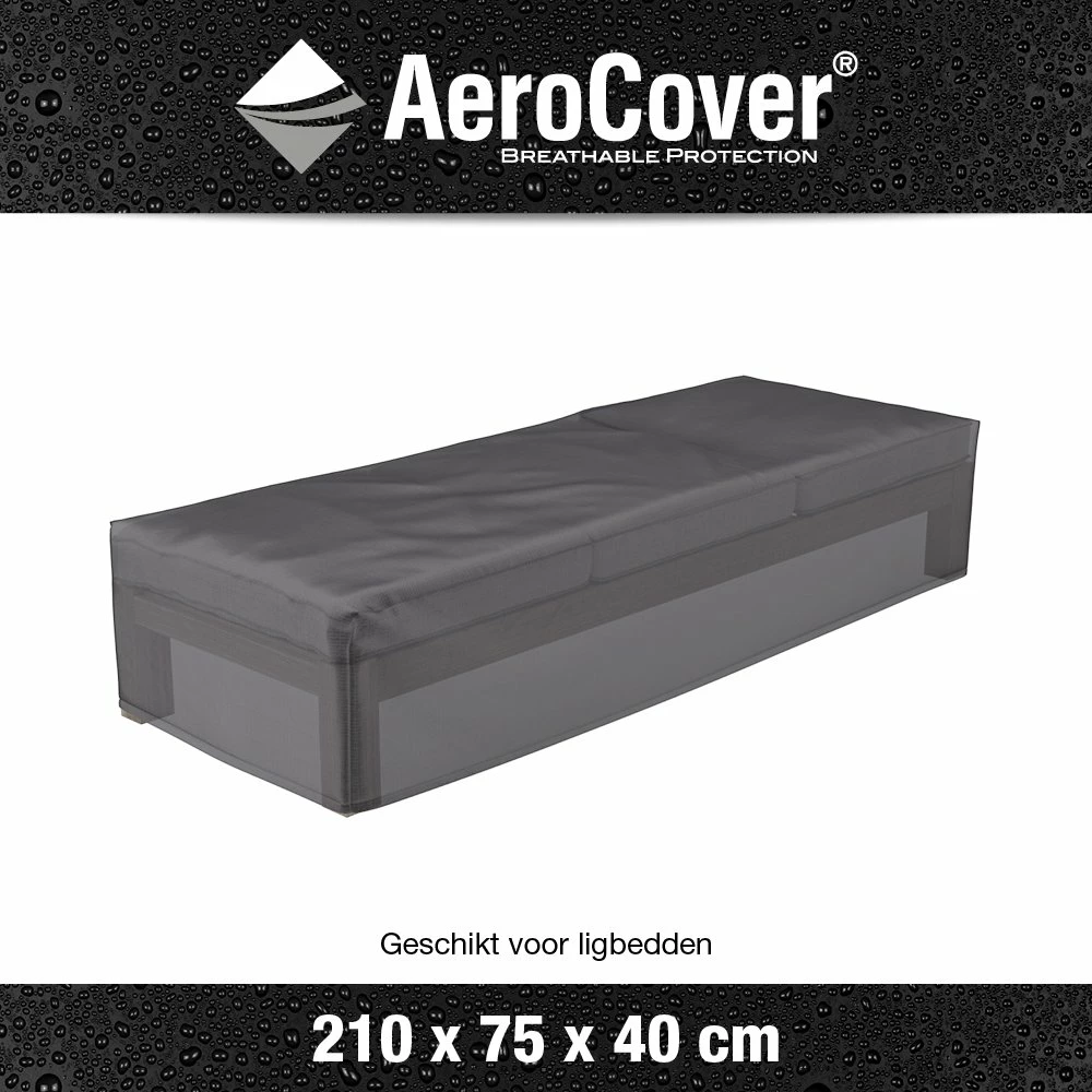 AeroCover loungebedhoes. Ademende loungebedhoes voor loungebed 210x75xH40. O.a. geschikt voor loungebedden tot een lengte van 210 cm. AeroCovers zijn ademend, waterbestendig, reduceren condensvorming en gaan schimmelvorming tegen. De stof heeft een hoge kleurechtheid dankzij de door en door geverfde vezels. Een AeroCover hoes verlengt de levensduur van uw tuinmeubelen. AeroCovers zijn vervaardigd van sterk en lichtgewicht ripstop polyester. Ze zijn makkelijk hanteerbaar en nemen weinig ruimte in wanneer niet in gebruik. De afdekhoes is voorzien van rijgkoord met 2 stoppers voor een goede pasvorm. Inclusief handige opbergtas. AeroCover stoffen zijn 100% waterdicht, de naden zijn, net als elke ander hoes, spatwaterdicht.