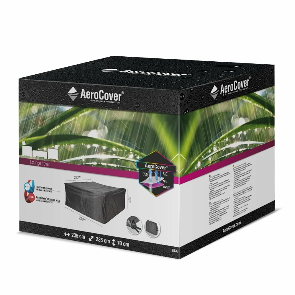 AeroCover loungesethoes. Ademende loungesethoes vierkant voor loungesets 235x235xH70. O.a. geschikt voor loungesets met meerdere elementen, hoeksets met hoge tafel of L-vorming hoeksets welke tegen elkaar aan worden geschoven. AeroCovers zijn ademend, waterbestendig, reduceren condensvorming en gaan schimmelvorming tegen. De stof heeft een hoge kleurechtheid dankzij de door en door geverfde vezels. Een AeroCover hoes verlengt de levensduur van uw tuinmeubelen. AeroCovers zijn vervaardigd van sterk en lichtgewicht ripstop polyester. Ze zijn makkelijk hanteerbaar en nemen weinig ruimte in wanneer niet in gebruik. De afdekhoes is voorzien van rijgkoord met 2 stoppers voor een goede pasvorm. Inclusief handige opbergtas. AeroCover stoffen zijn 100% waterdicht, de naden zijn, net als elke ander hoes, spatwaterdicht.
