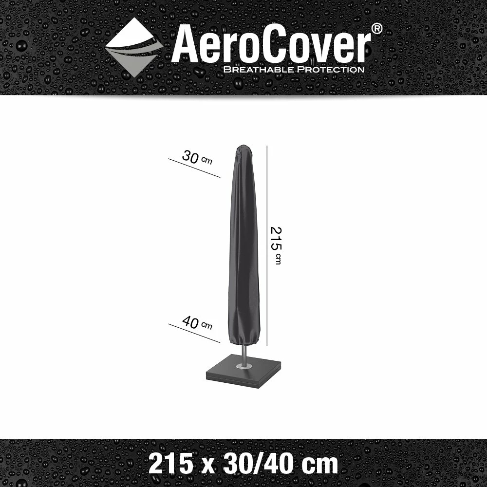 AeroCover parasolhoes 215×30/40cm. Ademende parasolhoes geschikt voor parasols ≤ Ø 4,0m en ≤ 2,75×2,75m. Handige ingenaaide stok om uw parasolhoes makkelijk over de parasol te plaatsen zonder een trap te gebruiken. AeroCover parasolhoezen zijn ademend, waterbestendig, reduceren condensvorming en gaan schimmelvorming tegen. De stof heeft een hoge kleurechtheid dankzij de door en door geverfde vezels. Een AeroCover beschermhoes verlengt de levensduur van uw parasol. AeroCover stoffen zijn 100% waterdicht, de naden zijn, net als elke ander hoes, spatwaterdicht.