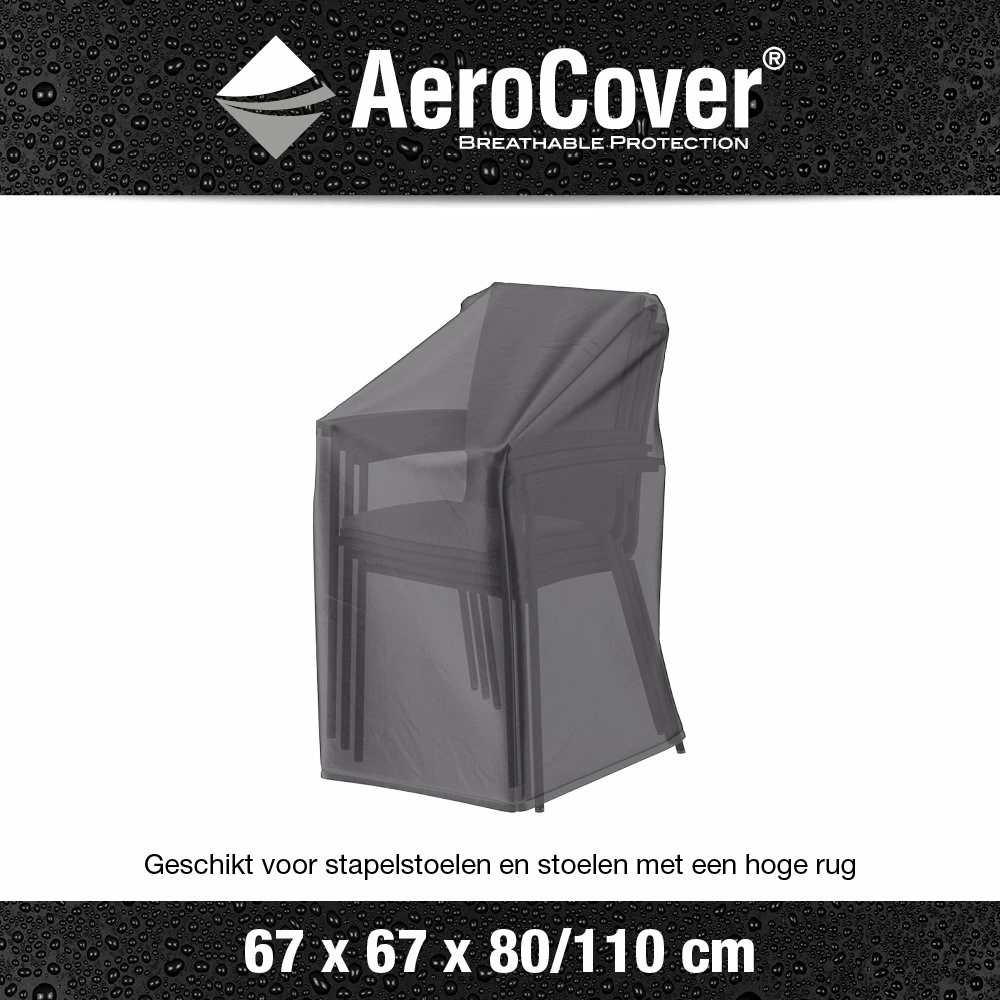 AeroCover stapelstoelhoes. Ademende tuinmeubelhoes voor stapelstoelen, gasveerstoel en andere dinerstoelen met hoge rug. AeroCovers zijn ademend, waterbestendig, reduceren condensvorming en gaan schimmelvorming tegen. Een Aerocover hoes verlengt de levensduur van uw tuinmeubelen. AeroCovers zijn vervaardigd van sterk en lichtgewicht ripstop polyester. Ze zijn makkelijk hanteerbaar en nemen weinig ruimte in wanneer niet in gebruik. De afdekhoes is voorzien van rijgkoord met 2 stoppers voor een goede pasvorm. Inclusief handige opbergtas. AeroCover stoffen zijn 100% waterdicht, de naden zijn, net als elke ander hoes, spatwaterdicht. De stof heeft een hoge kleurechtheid dankzij de door en door geverfde vezels.