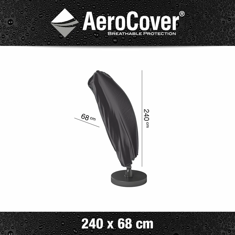 AeroCover parasolhoes voor zweefparasol 240x68cm. Ademende zweefparasolhoes geschikt voor zweefparasols met gebogen mast tot Ø 3,5m. Handige ingenaaide stok om uw parasolhoes makkelijk over de parasol te plaatsen zonder een trap te gebruiken. AeroCover parasolhoezen zijn ademend, waterbestendig, reduceren condensvorming en gaan schimmelvorming tegen. De stof heeft een hoge kleurechtheid dankzij de door en door geverfde vezels. Een AeroCover beschermhoes verlengt de levensduur van uw parasol. AeroCover stoffen zijn 100% waterdicht, de naden zijn, net als elke ander hoes, spatwaterdicht.