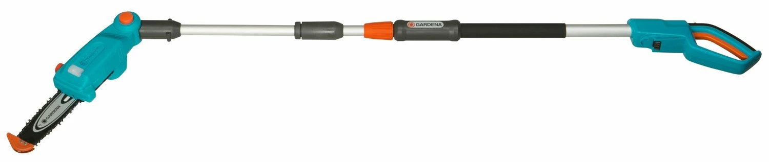De GARDENA accu-telescopische snoeischaar TCS 20 / 18V P4A is handig, compact en snoeit nauwkeurig. Met een bladlengte van 20 centimeter en uitschuifbare telescoopsteel bereikt u takken tot wel vier meter hoog – zonder te moeten klimmen of jezelf in gevaar te brengen op een zwaaiende ladder. Doordat de telescoopzaag slechts 3,5 kilogram weegt, is er gemakkelijk mee te werken.