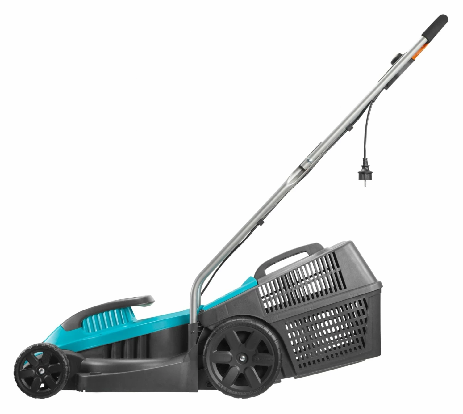 Gardena elektrische grasmaaier PowerMax 1100/32. De Gardena PowerMax 1100/32 is een krachtige en comfortabele elektrische grasmaaier. Power Plus: Motor met groot vermogen, krachtige overbrenging en grote doortrekkracht voor een precieze grassnit en optimaal gras opvangen. Zelfs lang of vochtig gras laat zich moeiteloos maaien. De PowerPlus technologie reduceert het totaalgewicht van de grasmaaier om aanmerkelijk lichter te werken. Centrale en comfortabele maaihoogteinstelling in 5 stappen met schaalverdeling. De Gardena PowerMax is voorzien van een ergonomisch gevormde beugelschakelaar met startknop en kabeltrekontlasting voor moeiteloos gebruik. Centrale draaggreep voor eenvoudig transport van de grasmaaier. Behuizing: zeer slagvast kunststof.