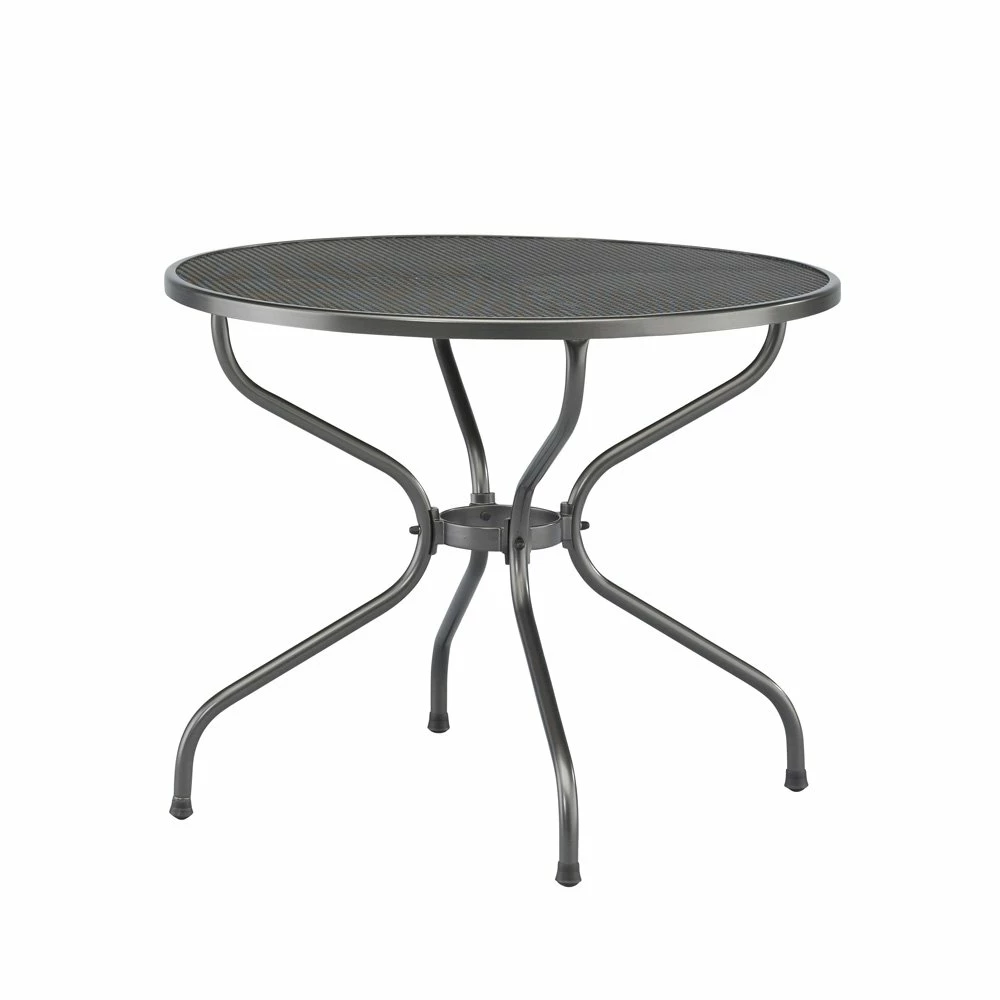 De hoogwaardige strekmetalen tafel Ø 90cm met bijzonder solide stalen frame is tegelijkertijd licht in uitstraling en gewicht. De tafel is zowel elegant als stevig en voelt zeer aangenaam aan dankzij de fluweel gladde oppervlakken.