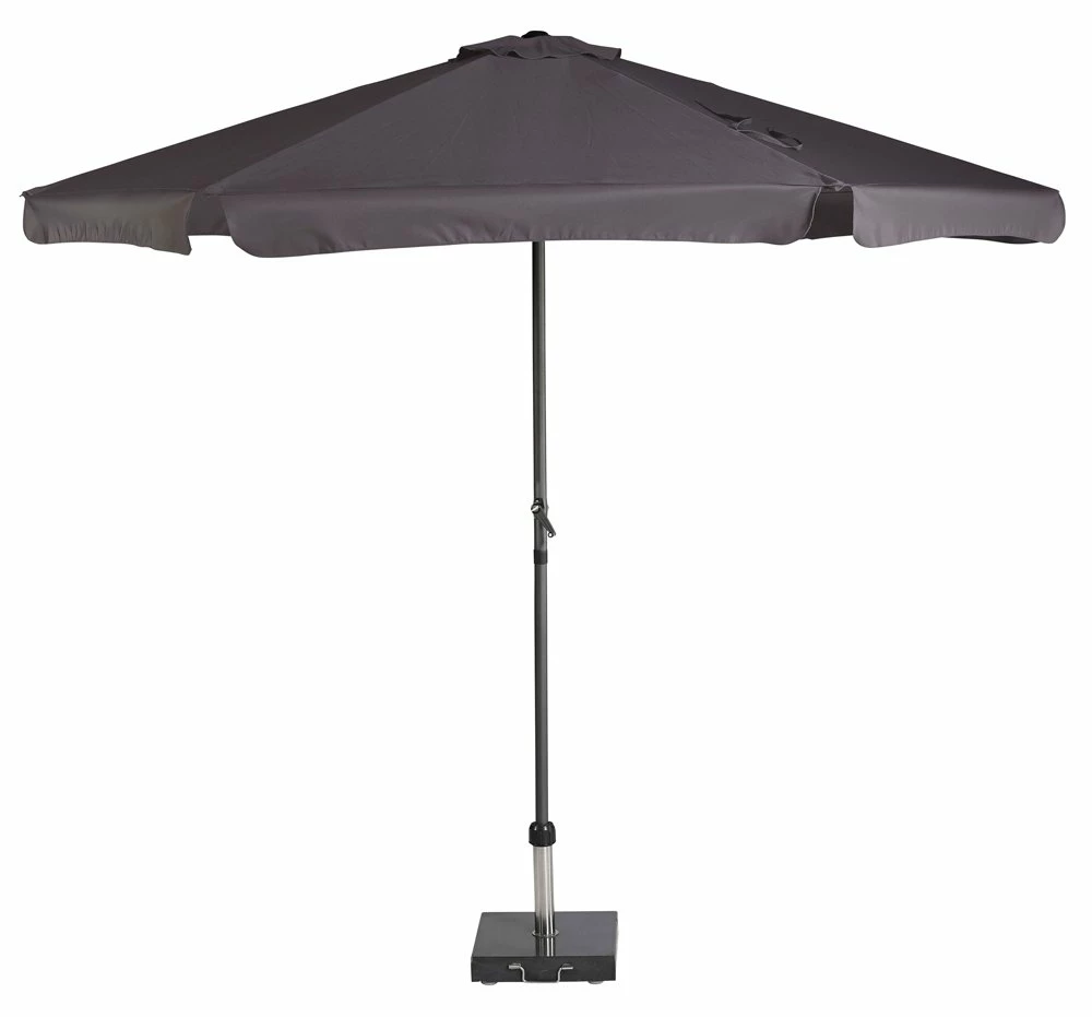 De parasol wordt zonder voet geleverd. Wij adviseren deze parasol op een 30kg parasolvoet van Platinum te plaatsen.