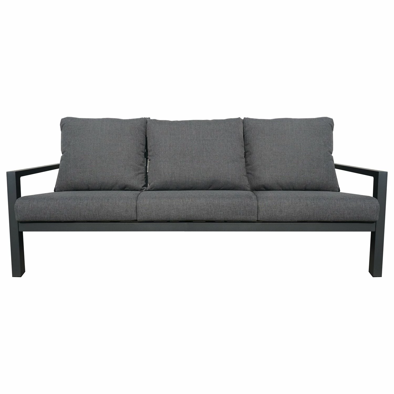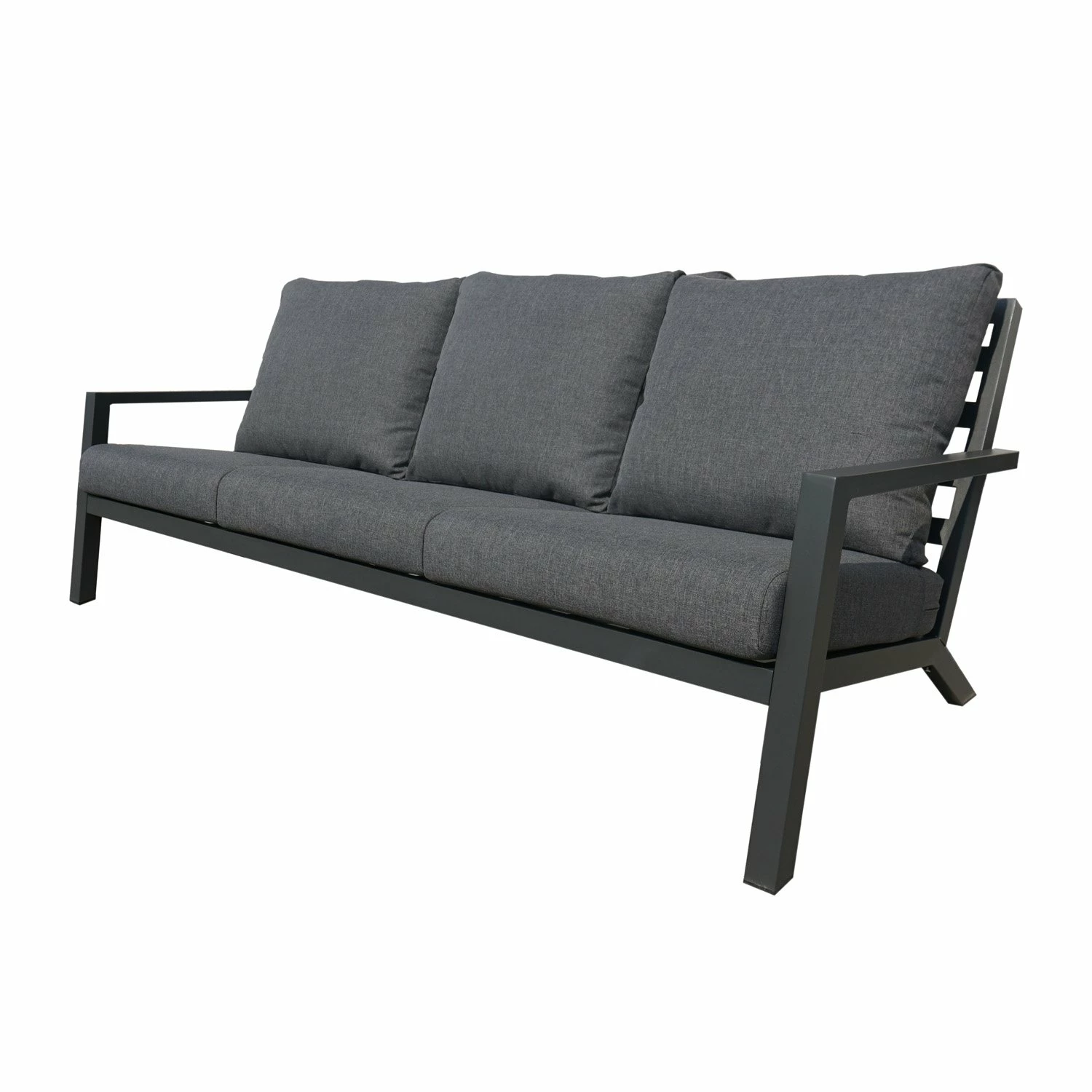 Van de serie CANNES is er ook deze prachtige 3-zitsbank! De kleur van de bank is antraciet en het materiaal is aluminium. De 3-zitsbank van CANNES is uitstekend te combineren met de fauteuil, hocker en bijzettafel van deze serie.