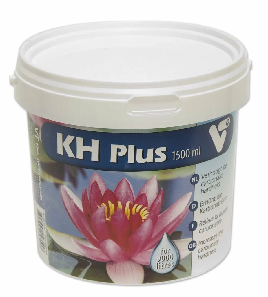 Biologische processen in de vijver verlagen de hardheid voortdurend. KH Plus verhoogt snel en probleemloos de carbonaathardheid van het vijverwater. Een KH-waarde van 6 tot 8 °DH gaat verzuring tegen en is ideaal voor de groei van zuurstofplanten.
